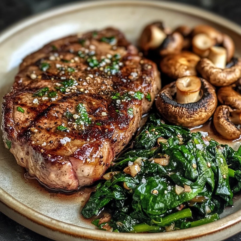 ¿Alguna vez has deseado disfrutar de una cena gourmet sin pasar horas en la cocina? El Bistec de Ribeye a la Parrilla con Espinacas Salteadas es la respuesta perfecta. Esta receta combina la jugosidad del ribeye con la frescura de las espinacas y el sabor terroso de los champiñones, creando un plato equilibrado y lleno de sabor. Ideal para una cena rápida entre semana o para impresionar en una ocasión especial, esta receta es tan sencilla como deliciosa.